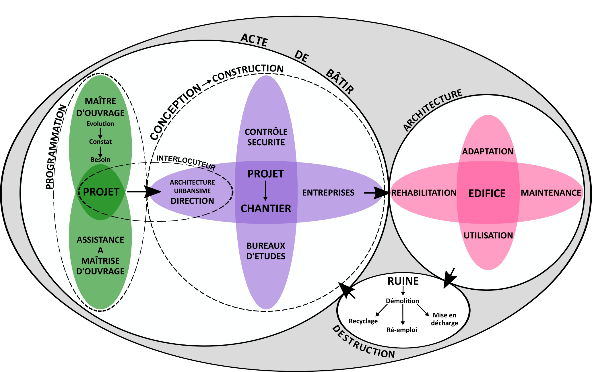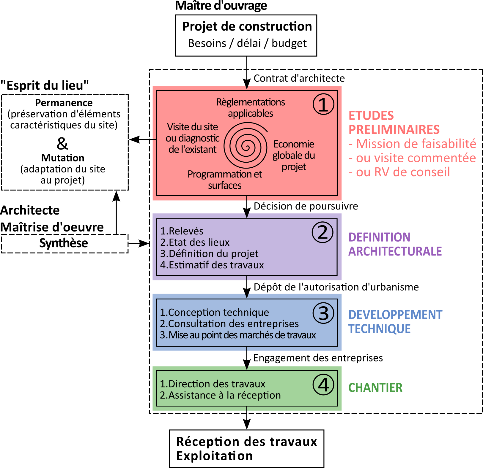 L'architecte est donc amené à assurer un rôle d'écoute et de synthèse : concerter les utilisateurs, s'entourer de spécialistes et coordonner les entreprises ; tout ce petit monde convergeant vers la matérialisation d'une idée. On le devine, […] le projet s'assume comme une trajectoire incertaine et non un problème à résoudre, comme un méandre existentiel, un ensemble de cheminements dont l'architecte doit normalement assurer la convergence, selon un principe de sélection artificielle et bien peu naturelle (2). Ce processus conditionne l'existence et la reconnaissance même d'un espace accueillant ; l'architecte facilite ce cheminement avec sa méthode et sa sensibilité, chaque projet est singulier.